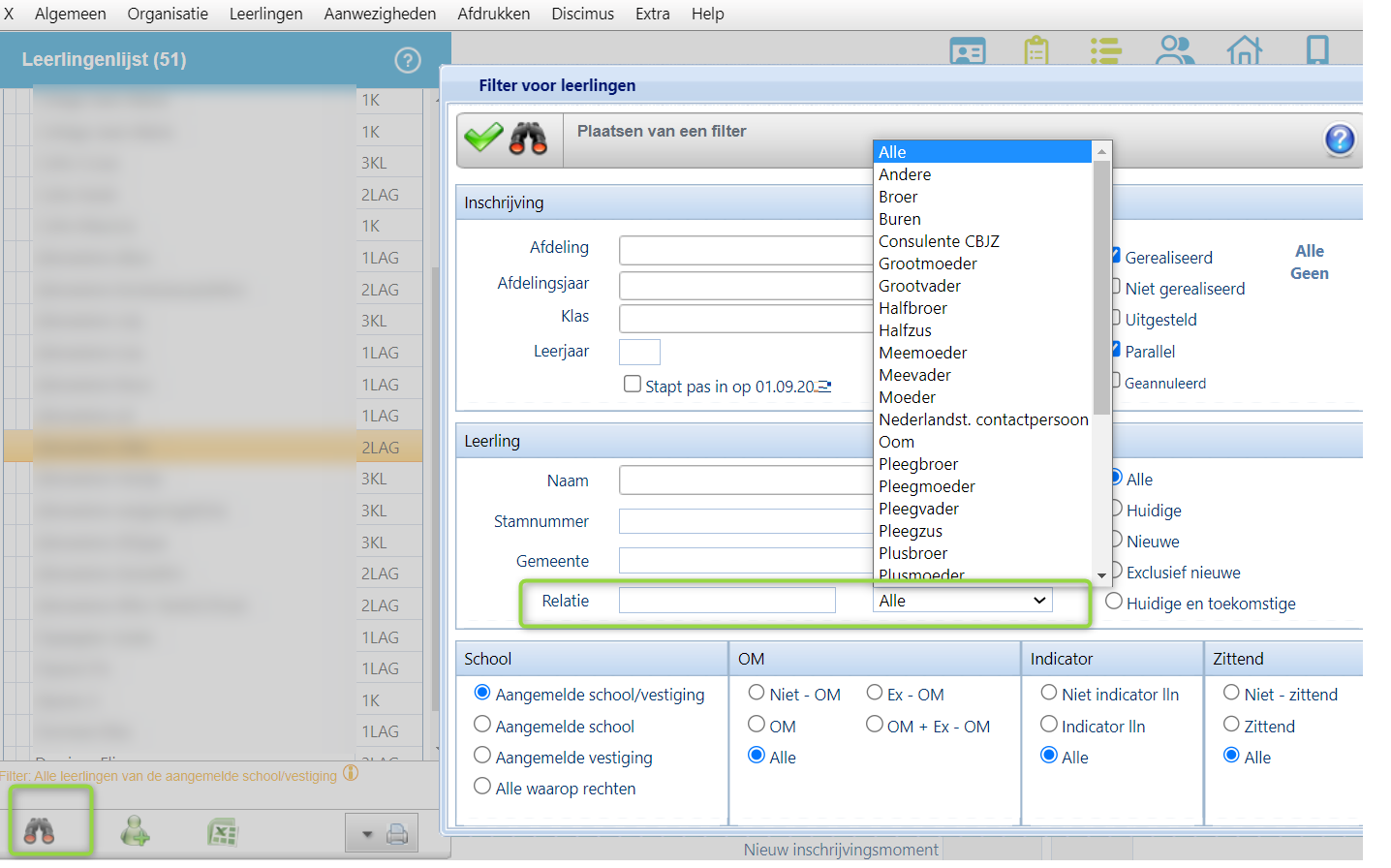 Dit kan via de filter bij Leerlingen > Consulteren.