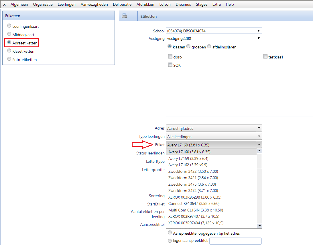 - Etiketten/brieven/documenten voor selectie van leerlingen afdrukken (SO)