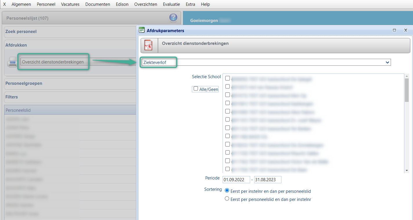 (vb. Archiefpersoneel aan de aangemelde school). Van deze bekomen personeelsleden kan opnieuw een overzicht van de ziekteverloven aangemaakt worden – zoals hierboven.