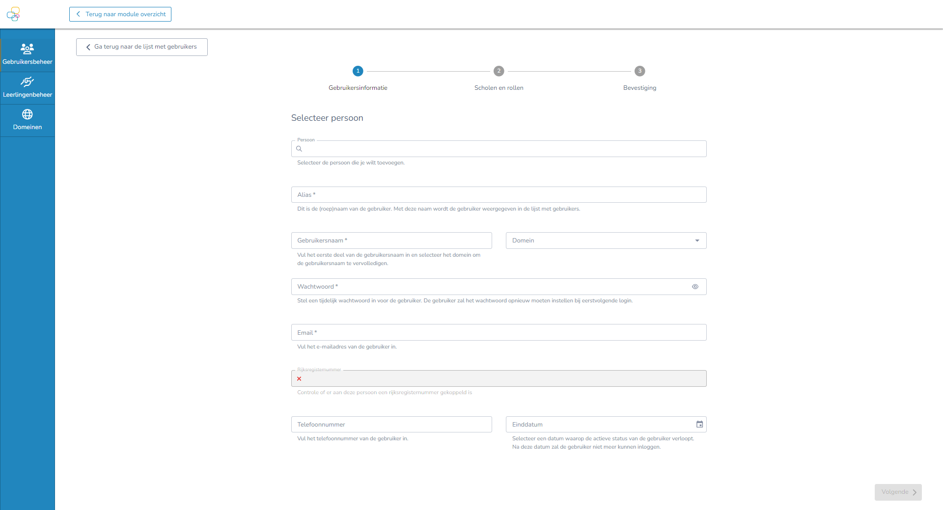 - Gebruikersbeheer 2.0: Gebruikers zonder rijksregisternummer