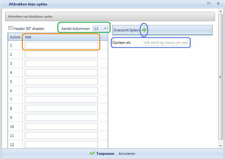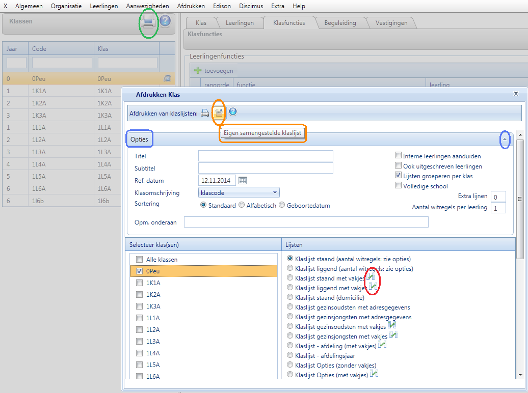 - Ook een eigen samengestelde klaslijst is mogelijk (aangeduid in het oranje).