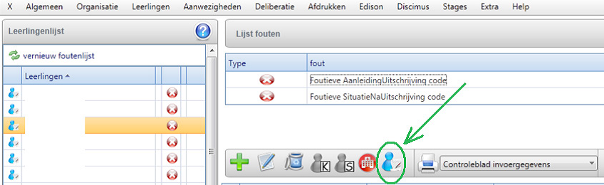 Dit kunt u oplossen door op de foutomschrijving te klikken; u krijgt dan het tabblad ‘Inschrijving’ te zien. Hier klikt u bovenaan op dit icoontje: