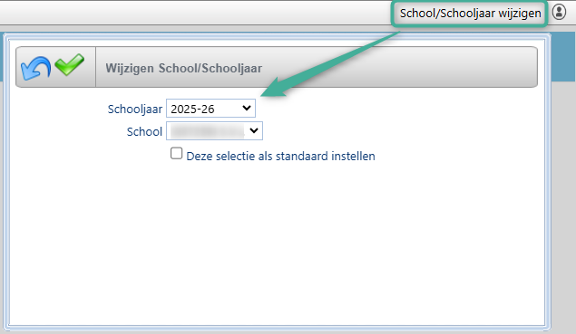 Via 'School/schooljaar wijzigen' kan je nagaan of het nieuwe schooljaar reeds geïnitialiseerd is.