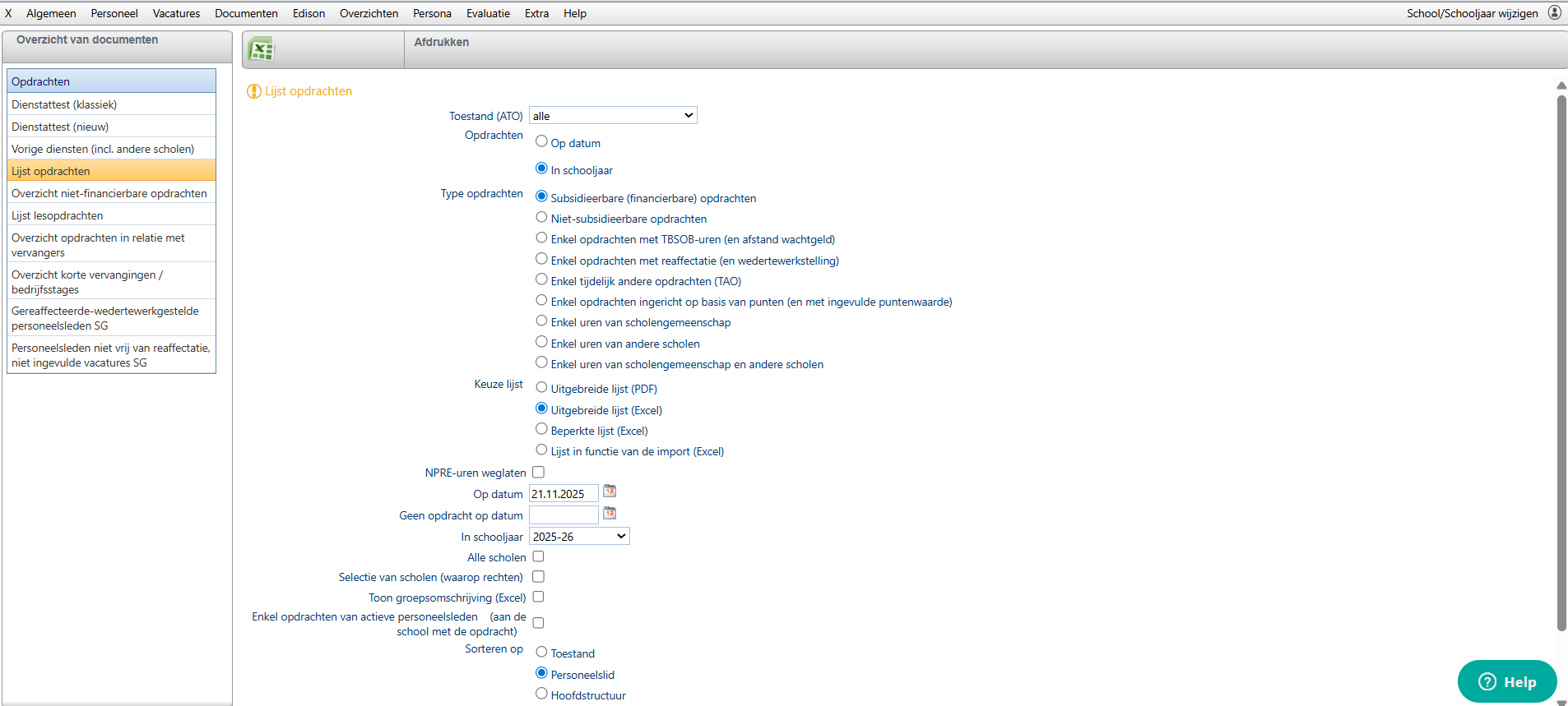 Dit doe je via Documenten > Afdrukwizards > Opdrachten > Lijst opdrachten.