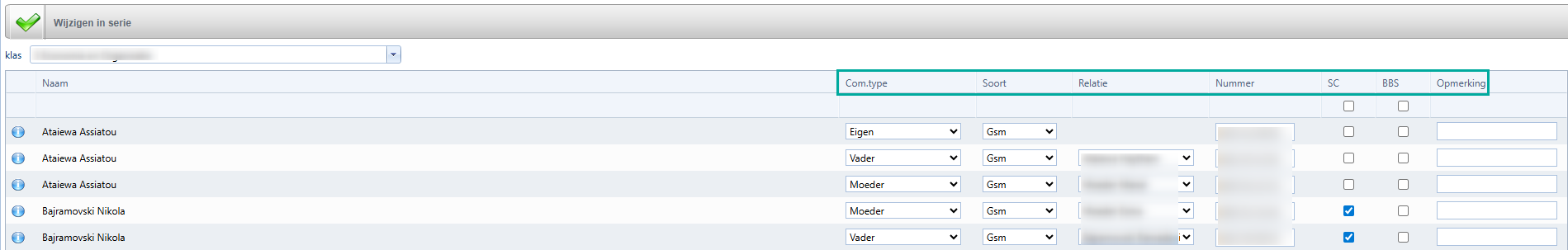 Op telefoonniveau kun je ondermeer collectief het type communicatienummer, de relatie en het telefoonnummer zelf aanpassen.