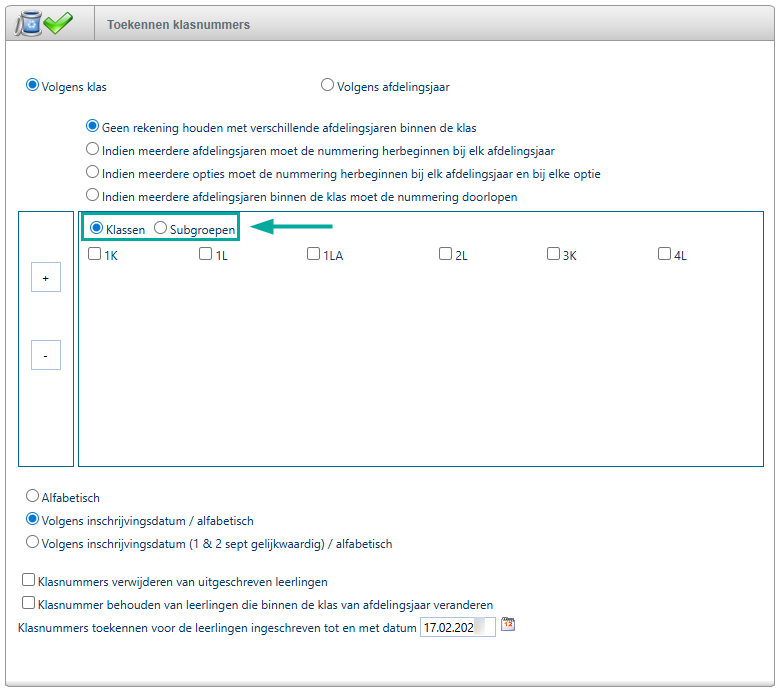 1. Klasnummers klassikaal toekennen/wijzigen