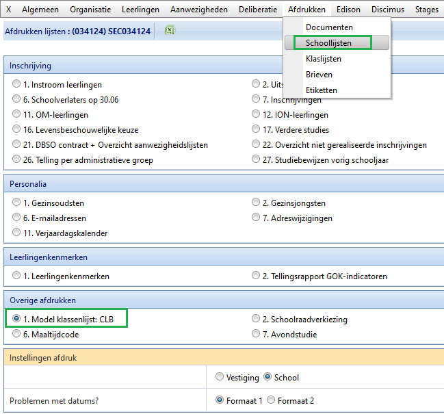1) Via de model klassenlijst voor CLB: