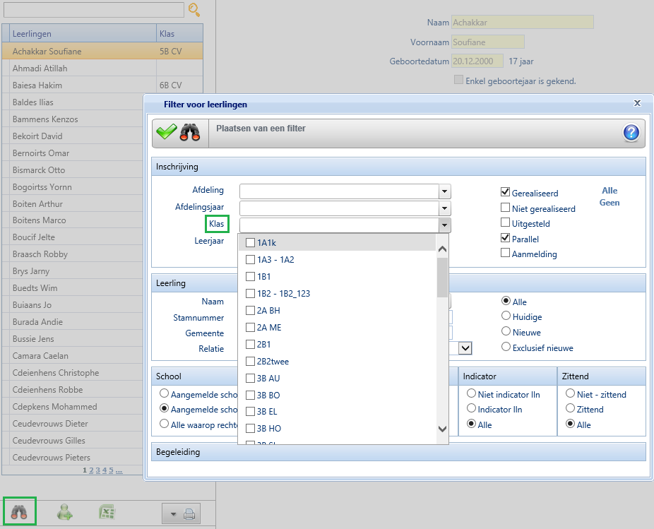 - ofwel eerst die bepaalde klas(sen) eruit filteren bij het raadplegen van de leerlingen: