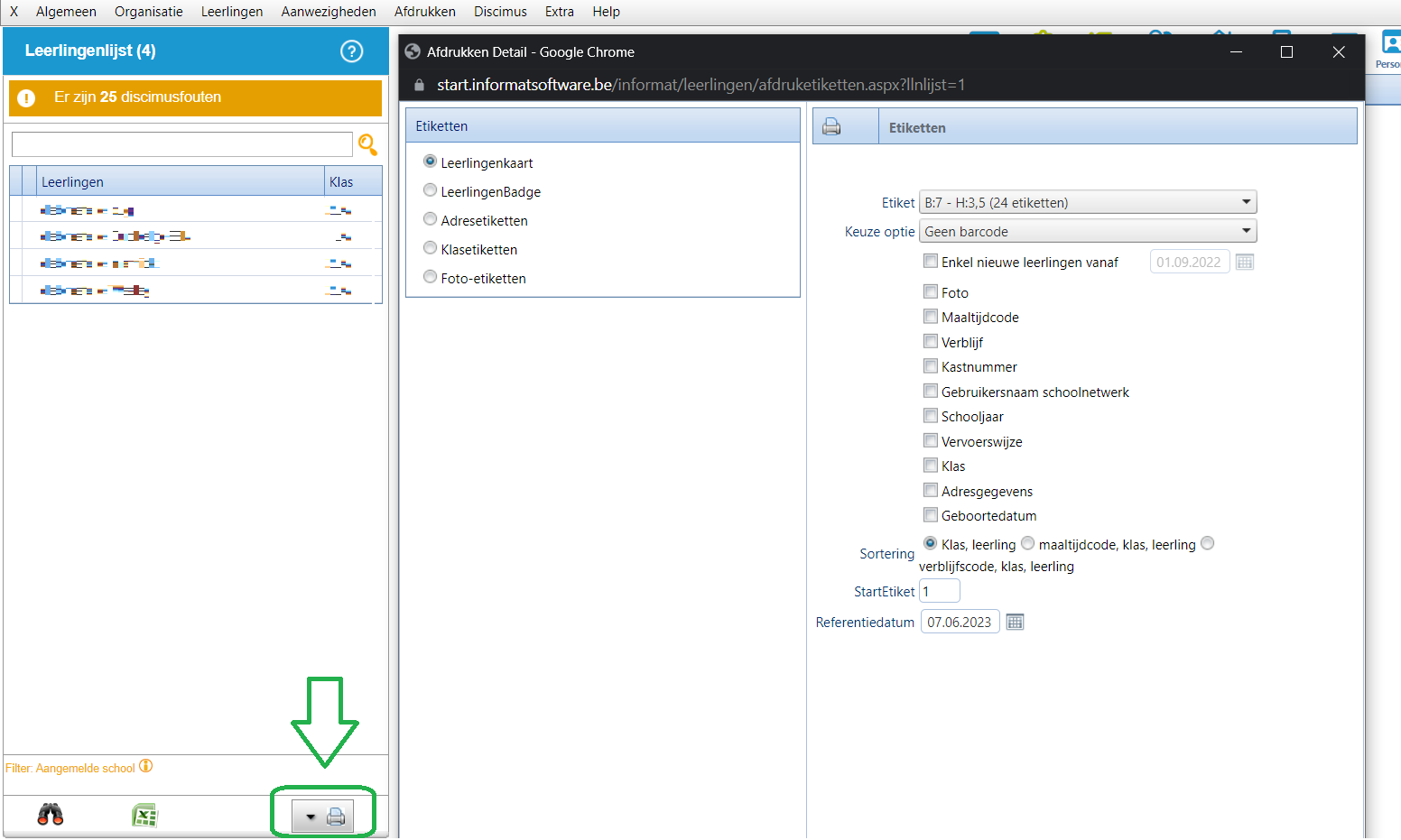 - Etiketten/brieven/documenten voor selectie van leerlingen afdrukken (SO)