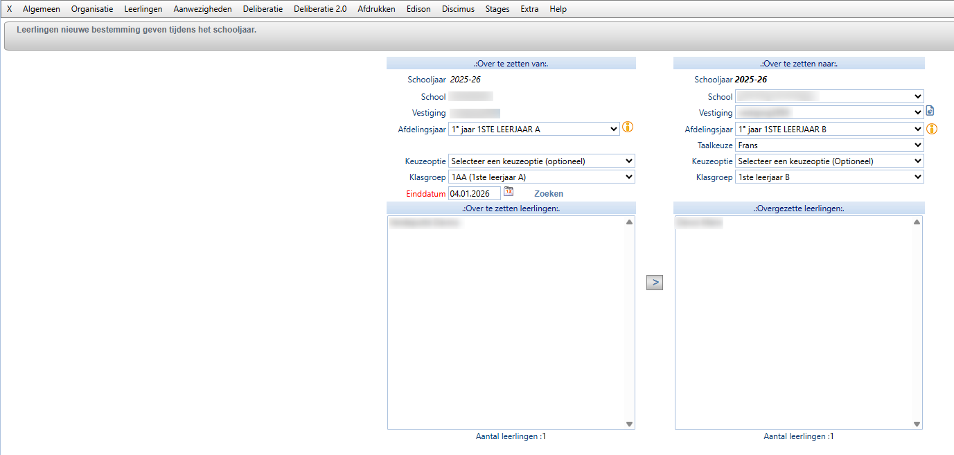 Opgelet: Dit artikel heeft betrekking op leerlingen die in de loop van het schooljaar van richting of van studiejaar veranderen. Indien u in het begin van het schooljaar leerlingen verkeerd heeft overgezet, verwijzen we door naar dit artikel.