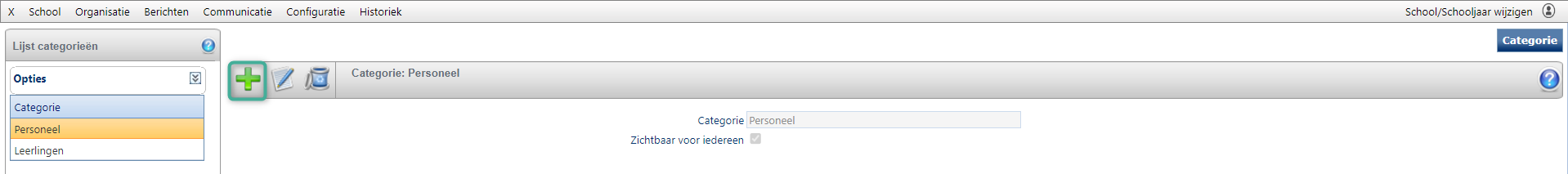 Dit is een verplichte stap. Met categorieën bedoelen we de mappenstructuur om de mails/sms'jes te bewaren voor wie ze bedoeld zijn. Deze maak je aan via Berichten > Categorieën met het plusteken.