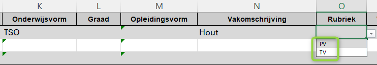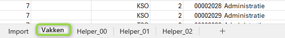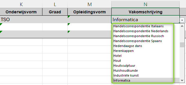 In dit sjabloon kun je op het eerste werkblad 'Import' het vak selecteren uit de aangeboden keuzelijst: