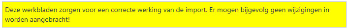 Ook de bijkomende werkbladen zijn nodig voor een correcte werking van de import.