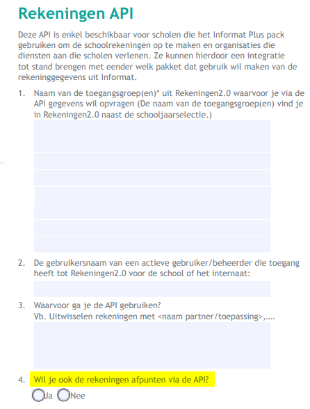 In je aanvraag heb je ook aangegeven dat je wenst af te punten via de API: