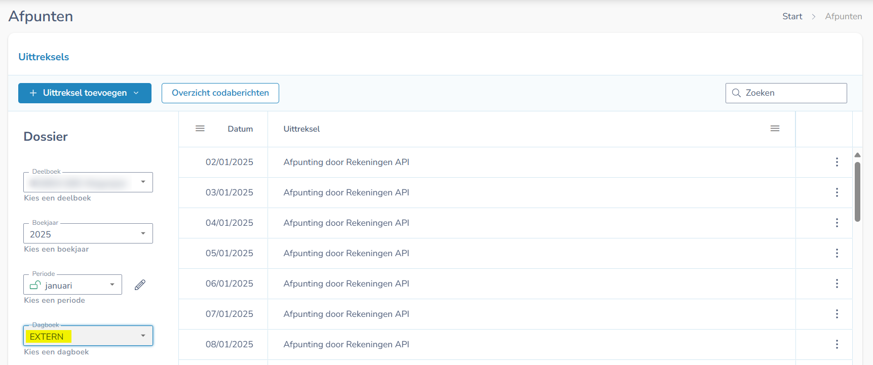 Informat zet dan onder het afpunten een extra dagboek 'EXTERN' klaar.