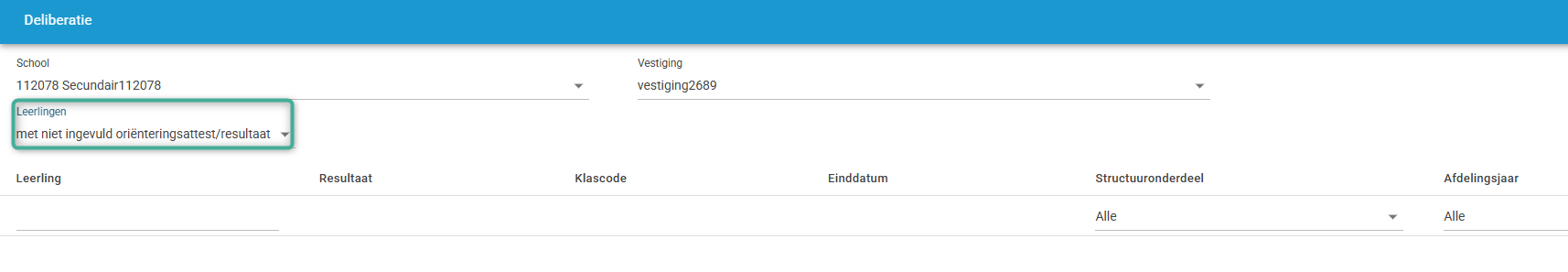 Dit kan je controleren via menu Deliberatie 2.0 > Deliberatie-invoer. Er is een filteroptie 'met niet ingevuld oriënteringsattest/resultaat'. Indien je deze filter toepast en er verschijnt geen enkele leerling, dan heeft elke leerling reeds een resultaat toegekend gekregen: