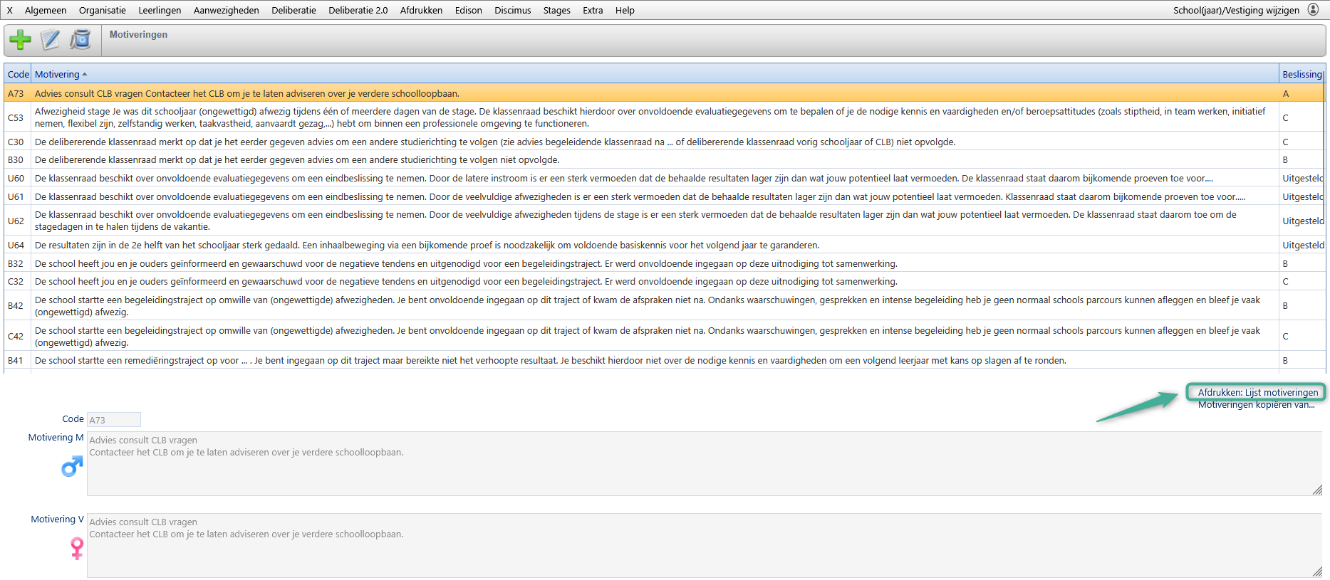 - Afdrukken lijst met leden van de klassenraad.