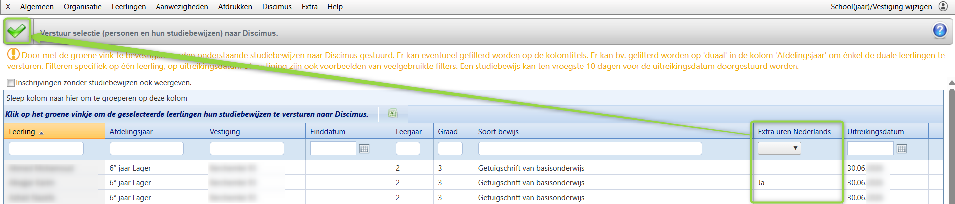 Dit gegeven moet worden doorgestuurd naar Discimus, samen met de getuigschriften basisonderwijs.