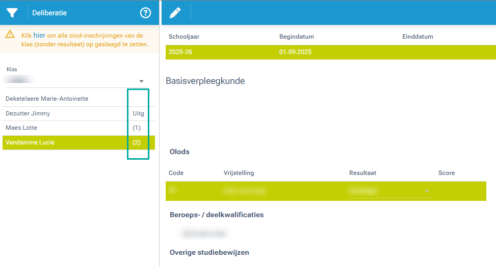 - OLOD-resultaten bij tussentijdse evaluatie of bij studenten die zich uitschrijven vóór de deliberatieperiode