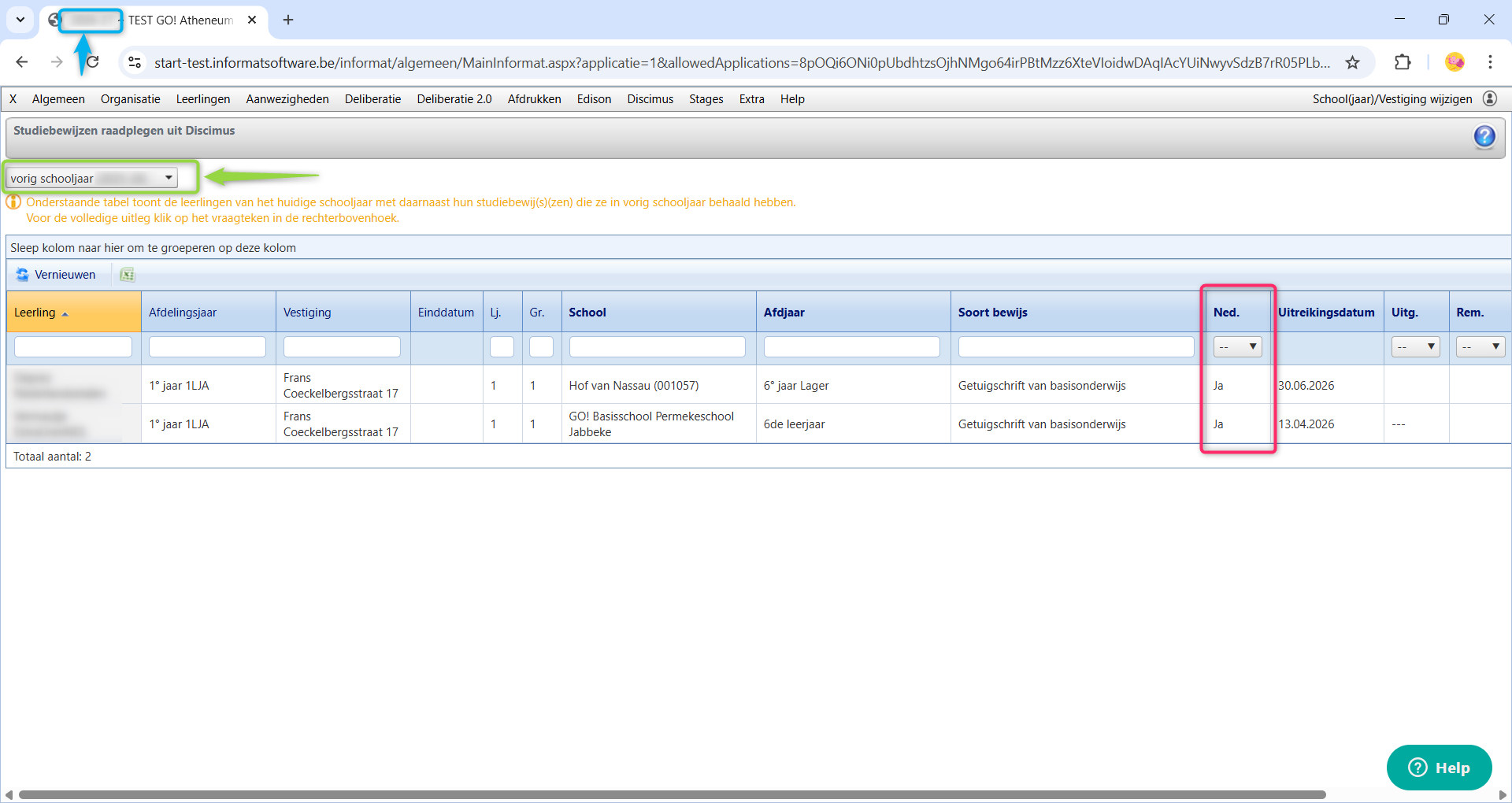 *Opgelet: Discimus stelt deze gegevens pas beschikbaar vanaf 01.07 en vanzelfsprekend op voorwaarde dat de lagere school de studiebewijzen reeds doorgestuurd heeft.