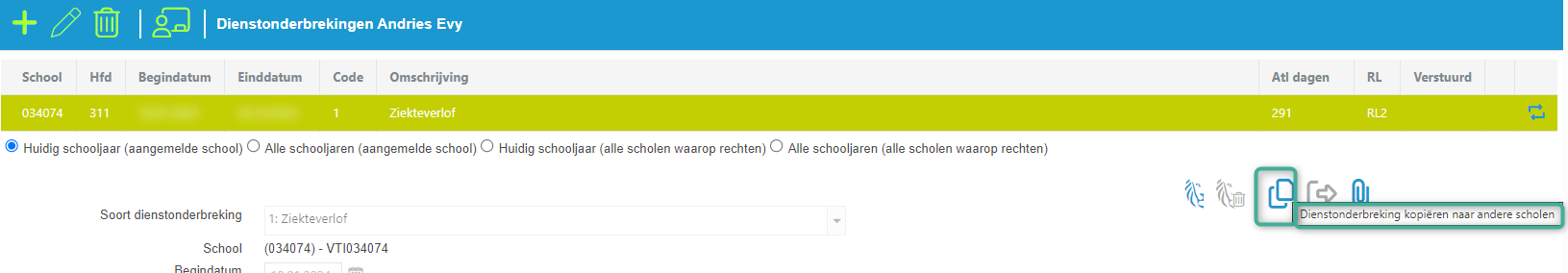 De oplossing is eenvoudig: Zorg dat deze dienstonderbreking in elk instellingsnummer voorkomt (tip: je kan gebruik maken van de kopieer-knop op het tabblad 'Dienstonderbrekingen').