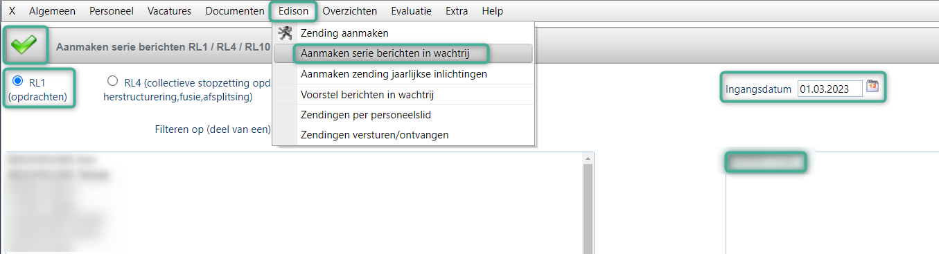 Dat kan langs menu Edison - Aanmaken serie berichten in wachtrij.