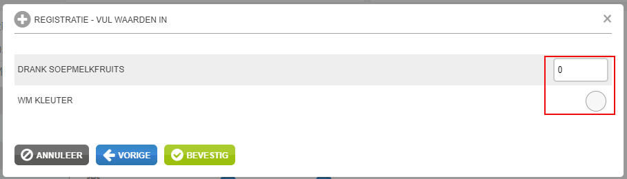 In dit laatste scherm worden de eenheden getoond die gekoppeld staan aan de gekozen activiteit. Hierbij kan nu de nodige registratiegegevens worden ingevuld die per dag geregistreerd moeten worden. Je bevestigt uiteindelijk met de knop 'bevestigen'. Hierbij komen de geselecteerde registraties aangeduid tevoorschijn in het overzicht van de klas.