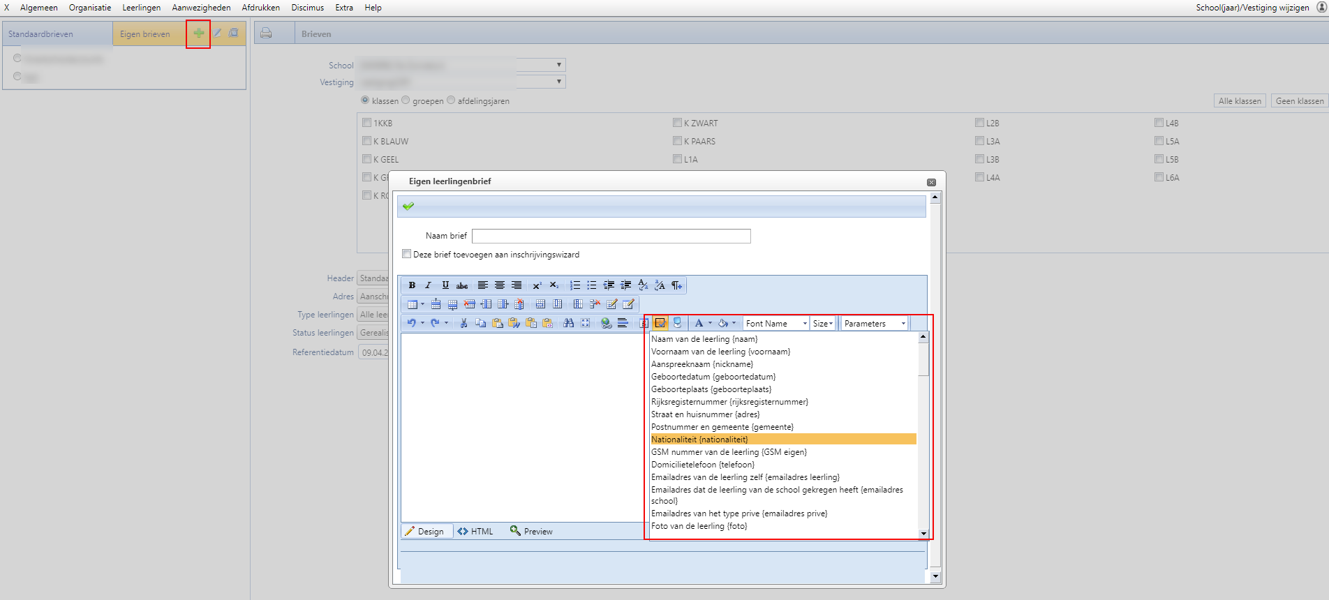 LET OP: Een brief kan niet worden afgedrukt voor leerlingen bij wie geen aanschrijfadres werd aangevinkt!