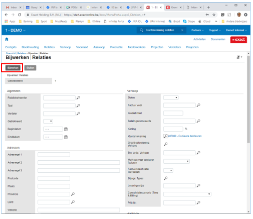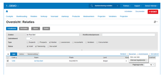 De klantenfiche in Exact openen en de gekoppelde klantenrekening verwijderen.