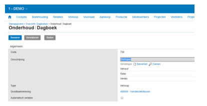 - Ga naar [Dossier] > Stamgegevens > Dagboeken