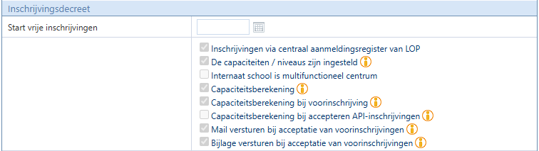 De datum van de start van de vrije inschrijvingen zorgt ervoor dat het programma weet vanaf wanneer het onderscheid tussen indicator- en niet-indicatorleerlingen genegeerd mag worden.
