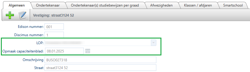 Het ingeven van het LOP is belangrijk omdat het LOP op het document ‘Mededeling van niet-gerealiseerde inschrijving’ komt. De datum van de opmaak van het capaciteitenblad moet je ingeven zodat deze juist verschijnt op het capaciteitenblad.
