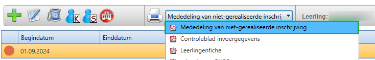 U kan die leerling toch nog “inschrijven” zodat hij in het systeem zit. Je kan hem dan altijd terug oproepen, mocht er toch een plaats vrijkomen. Om de leerling terug te vinden moet je naar Leerlingen > Consulteren en met de verrekijker filteren op status ‘Niet-gerealiseerd’. Indien je een leerling moet weigeren omdat de capaciteit bereikt is, moet je hem op de hoogte brengen met het document ‘Mededeling van niet-gerealiseerde inschrijving’.