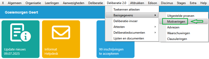 Dit is niet verplicht: Motiveringen, adviezen en waarschuwingen kunnen uiteraard ook per leerling manueel en persoonlijk ingegeven worden op het deliberatiescherm.