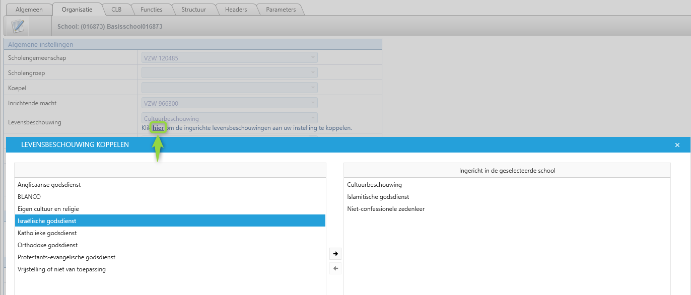 Als jullie school slechts bepaalde levensbeschouwingen inricht, dan kun je de lijst met aangeboden levensbeschouwingen beperken via deze knop: